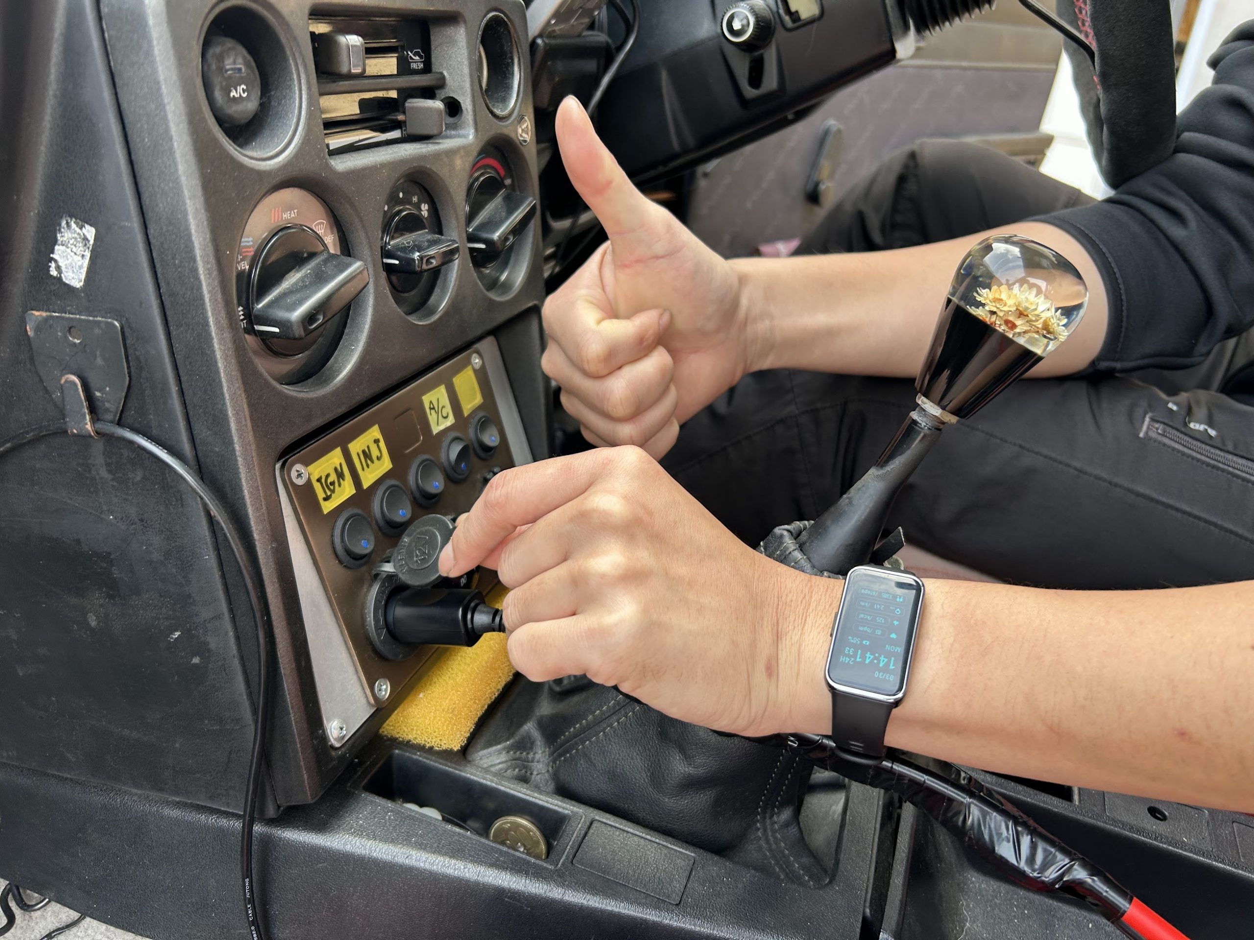②反対側のプラグを車内のシガーソケットに接続